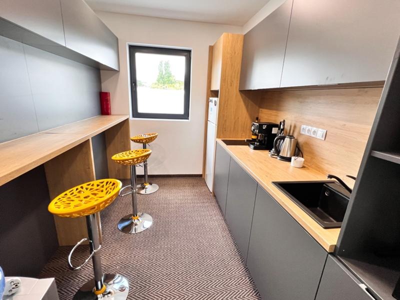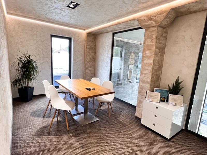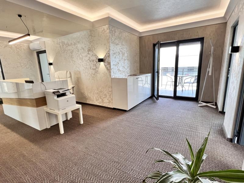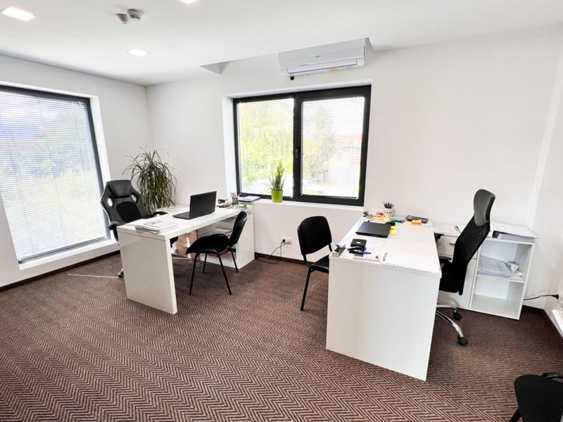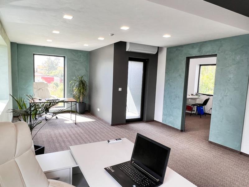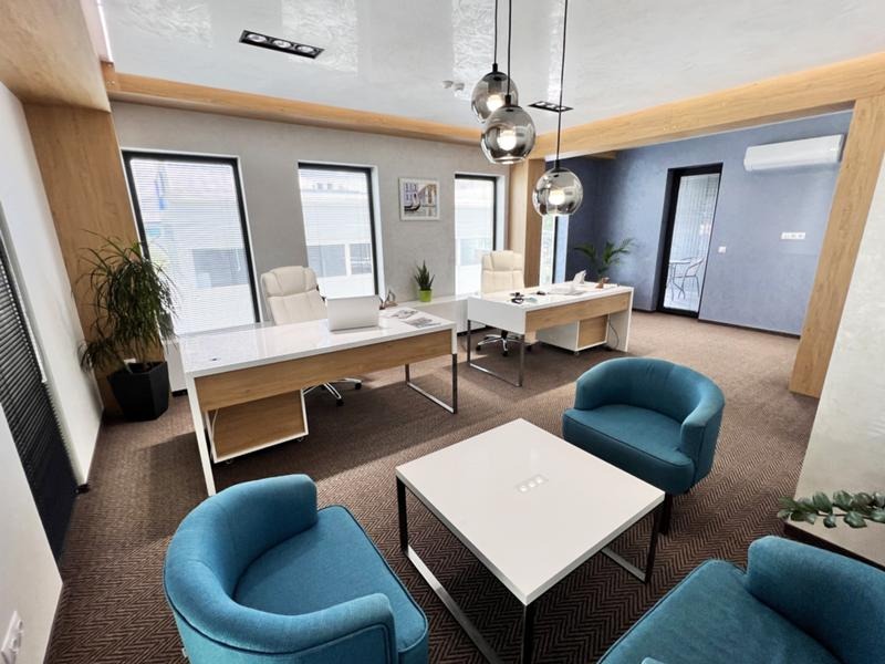 Сградата е въведена в експлоатация 2021год и разполага с 6 офис помещения, заседателна зала, приемна, огромен шоурум, складове, гараж, сервизни помещения, кухня и бани с тоалетни на двете нива! Строителството е изпълнено съгласно всички европейски норми като са изградени инсталации за пожарна безопасност, охранителни системи, видеонаблюдение, климатизация във всички помещения и много други!