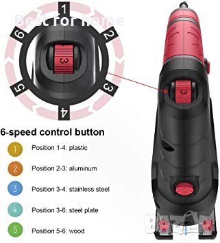 6 променливи скорости и по-мощен: 800 W меден мотор го задвижва до 3000 SPM с 6 вида регулируеми скорости, за да ви помогне да режете различни приложения и по-дебели материали (максимална дълбочина на рязане на дърво: 100 mm Желязо: 10 mm), 6-битовата променлива скорост ви позволява за контролиране на скоростта и точността на рязане и обработка на различни приложения и материали с по-висока точност. Оборудван със система за термичен цикъл на вентилатора, по-бързият капацитет на разсейване на топлината прави двигателя по-издръжлив.