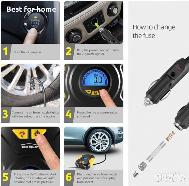 ЛЕСЕН ЗА ИЗПОЛЗВАНЕ】: Просто включете тази автоматична помпа за гуми в 12V електрически контакт на колата си и прикрепете маркуча към гумата, която искате да напомпате. Има ясен цифров дисплей за текущия PSI, както и превключвател на режима за превключване между различни мерни единици (bar, Kpa, psi, Kg/cm 2). Той автоматично ще се изключи при достигане на предварително зададената от вас стойност на налягането. Отнема по-малко време и усилия от крачна помпа.