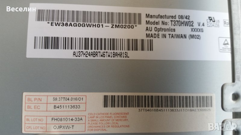 T-Con платка: T370HW02 V402 (37T04-C02) - 10 лв.(платката е с вероятен проблем в гама коректора)