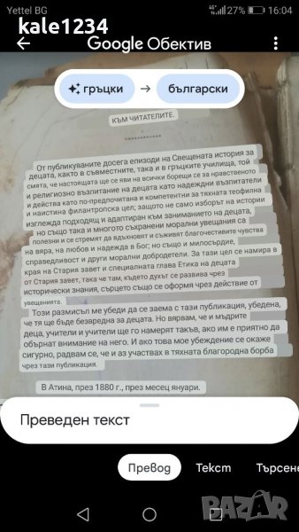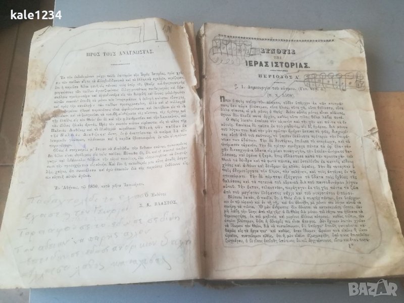 Антикварна книгаот 1865г. Учебник по Вероучение в началните училища, на гръцки език. Лошо състояние на корицата и първа страница. Съдържа 98 страници, без липсващи. Цена 70лв. Изпращам с опция преглед и тест или лично предаване.