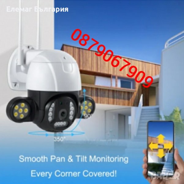 Въртяща се WiFi безжична IP камера 5MP FULL-HD с мощни LED прожектори