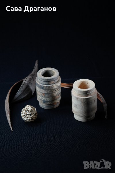 - Струговани моливници - Материал смърч и дъб външен диаметър 100мм. височина 140мм.