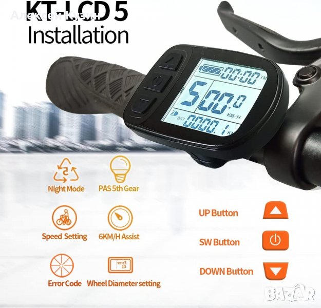 Дисплей за електрически велосипед LCD KT5 24V、36V、48V SM Plug