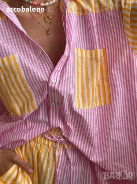 Дамски комплект къси панталони + раирана риза от две части, 3цвята
