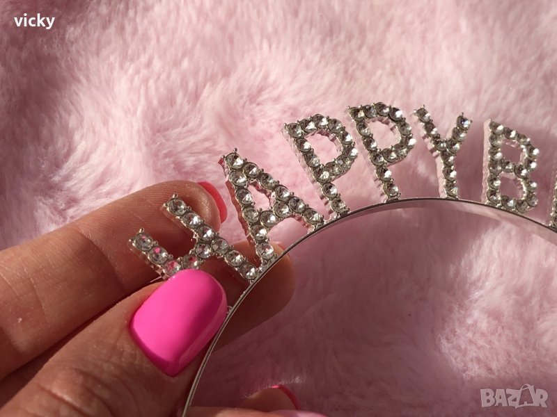 Нежна диадема/тиара с кристали за Рожден Ден, Happy Birthday - последни бройки! → Обява 39784715