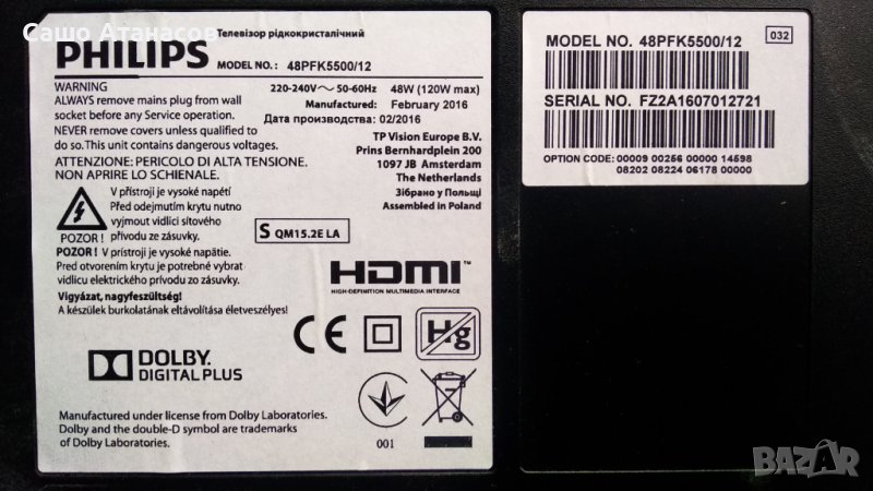 PHILIPS 48PFK5500/12 със счупена матрица ( TPT480LS-HN08.S REV:SG01B )