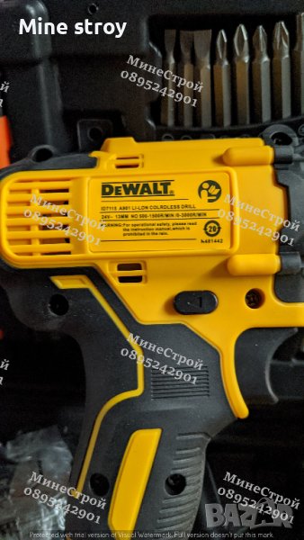 винтоверт DeWalt 24V 5Ah, с нисък център на тежестта . Снабден със механична 2-скоростна зъбна предавка с цялото метално червячно задвижване. Достига максимален въртящ момент от 42Nm, и дава възможност за регулиране на въртящият момент в 18 степени.Машината разполага с мощно двойно LED работно осветление с функция за задържане на осветлението.Много лек и компактен, с 4-полюсен мотор с метални зъбни колела. Доставя се в куфар с 2бр. 24V, 5.0Ah батерии, зарядно устройство, бургии, накрайници и др.