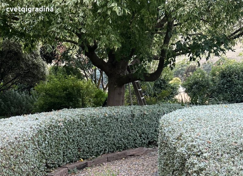 Поразителната сребриста зеленина, която е идеална за подрязване, прави това растение отличен екземпляр за жив плет. Лесен за грижа и бърз за оформяне на жив плет, Silver Germander ще расте на слънце или на частична сянка. Красиви лавандулови цветя през пролетта. Страхотен за топиарна работа в саксии или като официален нисък жив плет. Страхотен заместител на традиционния жив плет, който е податлив на болести.