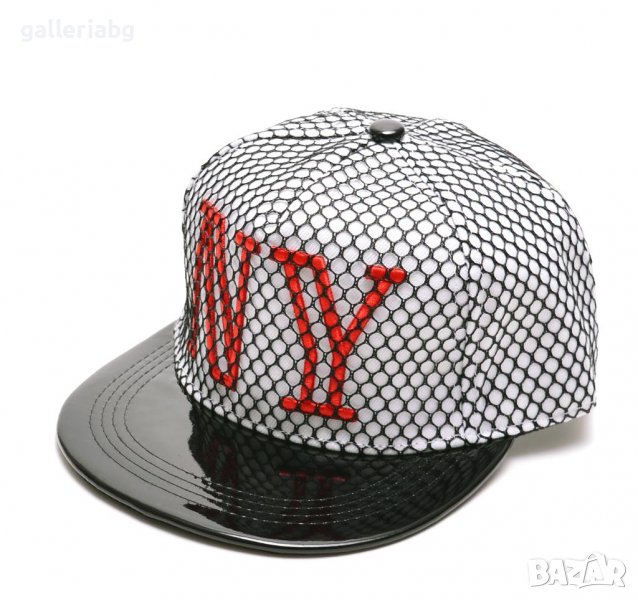 Спортна лятна шапка с козирка, декорирана с мрежа и надпис NY. Шапката е с възможност за регулиране на размера.
