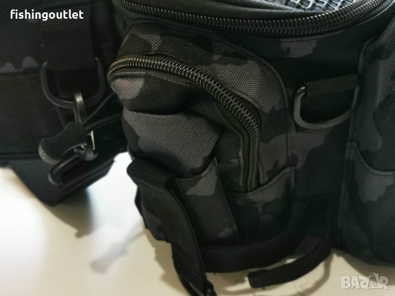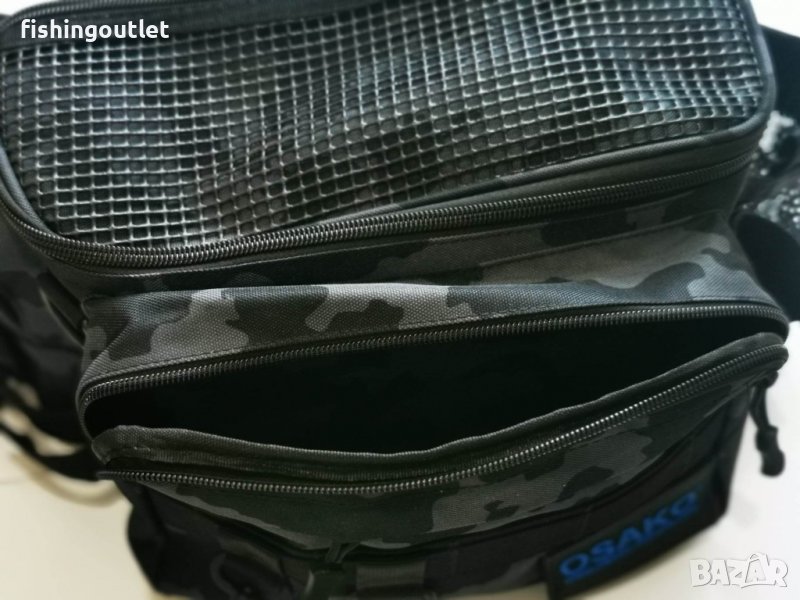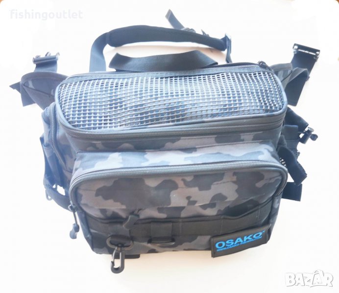 Спининг чанта Осако OS0035 за носене на кръста, предлагаща интелигентни решения за съхранение и достъп до вашите риболовни принадлежности. Изработена е от качествени материали, като основнoто отделение има облицовка отвътре и предпазва от влага. Комбинацията от камуфлажен десен дава на продукта перфекна визия, пасваща на риболовния стил. Подходяща за лесното и подредено съхранение и транспортиране на вашите кутии с блесни, клатушки, воблери и всякакви други аксесоари , както и за личните ви вещи като документи , телефон, щише за вода и др.