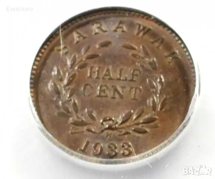 SARAWAK. 1/2 ( половин ) цент от 1933-Н год. Монетата е Сертифицирана от