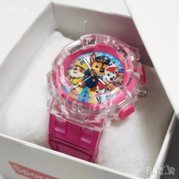 Продавам нов светещ детски часовник с героите от Пес Патрул. С включени батерии. Часовника се продава без кутия.
