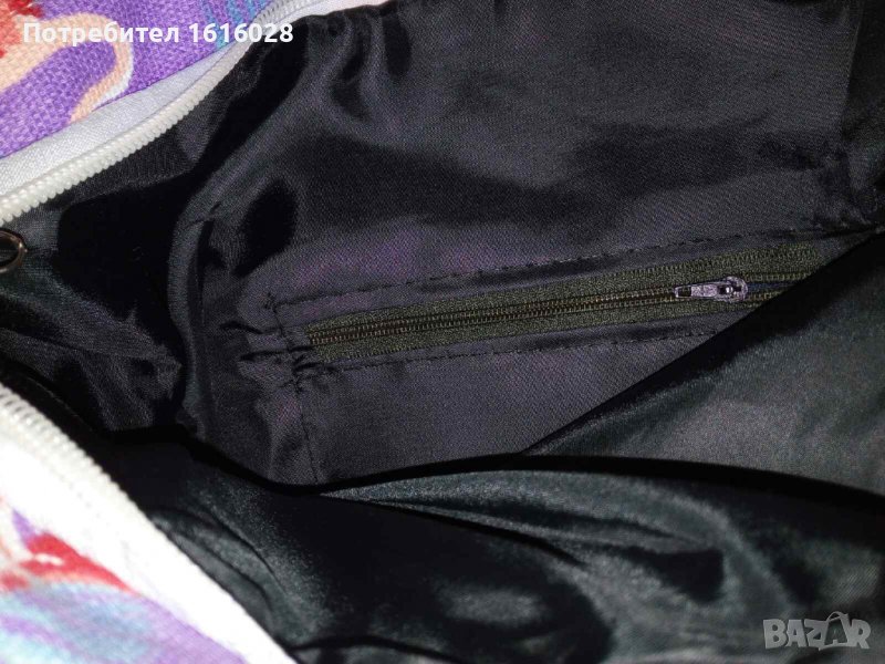 Отвътре са с черен хастар, един голям основен джоб и малко джобче с дзип.Чантите са от едната страна с едноцветен лен,а от другата с цветни фламинга.