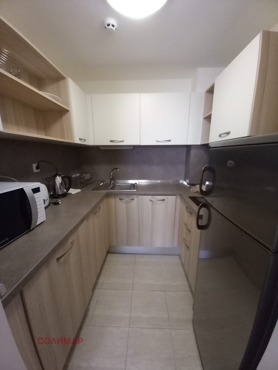 Апартаментът се продава напълно обзаведен. В комплекса има централна климатизация и централна топла вода. Комплексът е подходящ за сезонно ползване.Има голям паркинг за собственици, басейн, асансьор, охрана. Такса в комплекса е 10евро/кв.м.