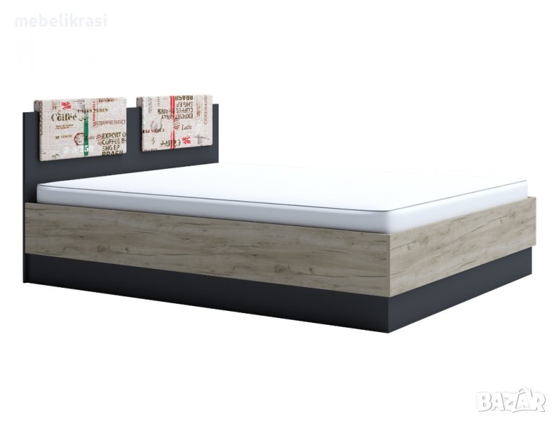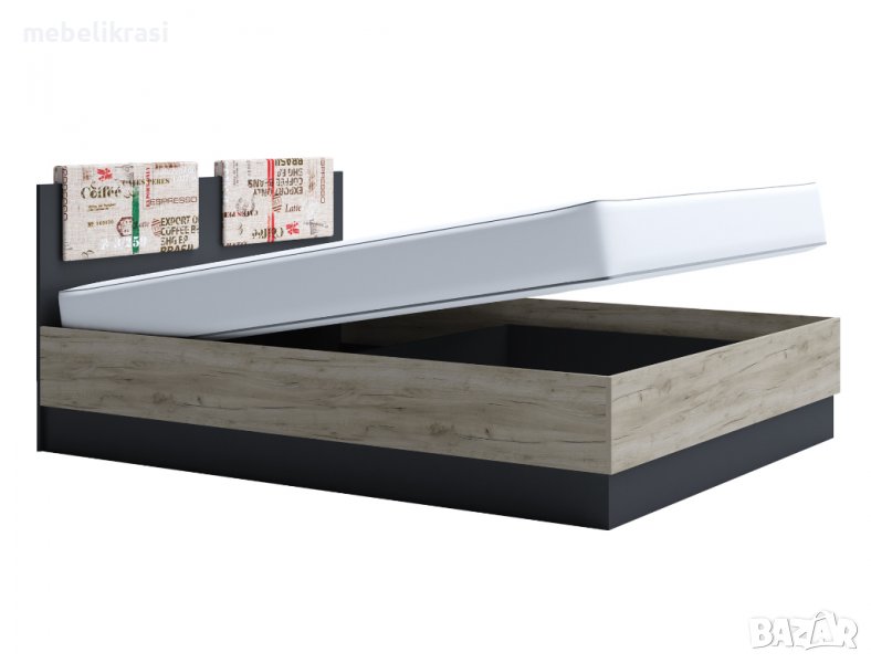 Функционален спален комплект "Мока" съставен от: легло с матрак 160/200 см, тапицирани възглавнички и амортисьорен механизъм, разкриващ подматрачно пространство за съхранение.