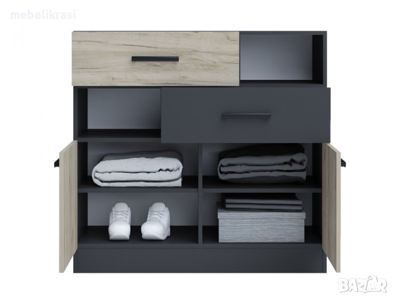 Допълнително може да закупите: скрин с две вратички, две чекмеджета и рафтове