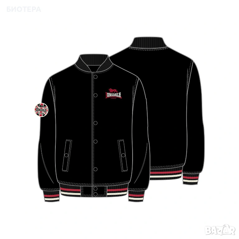 Оригинално мъжко яке LONSDALE бомбър XL – черно, ново, → Обява 39798794