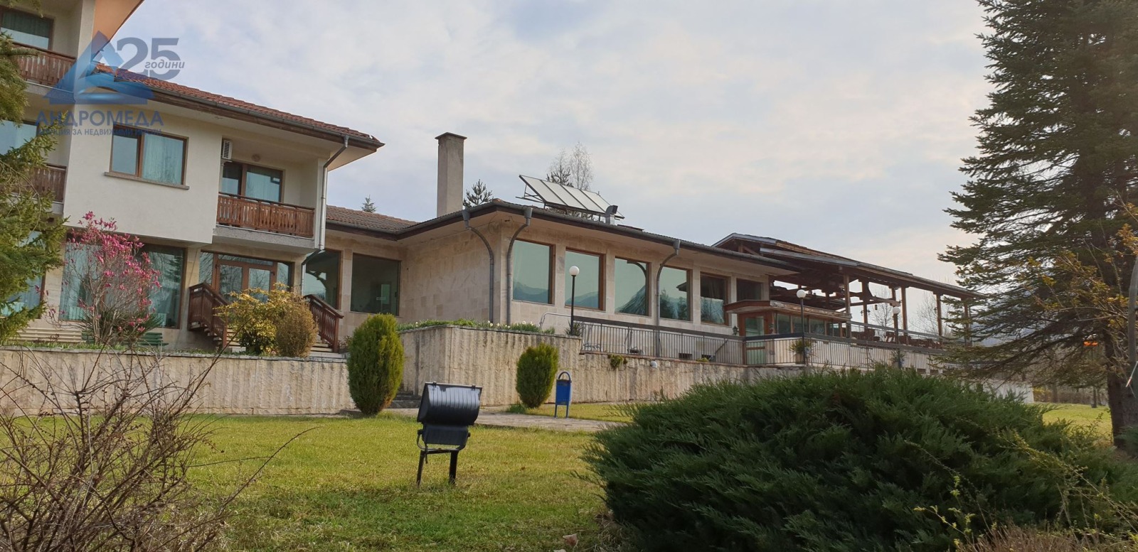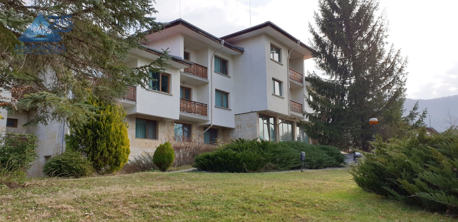 работещ хотел с басейн и панорама към 'Стара планина'. Хотелът е разположен в гр.Априлци с отлична панорама към връх Ботев и околността. Освен с гледката хотела може да се отличи с отличната база, ресторант с веранда, помещения за йога и фитнес, разнообразни забавления за гостите - отопляем басейн - голям и малък, шезлонги и чадъри, игрища, зелени площи, детска площадка и др. Хотелът се намира на спокойно място, без трафик, имота е последен във високата част на вилна и хотелска зона, на отстояние от другите сгради поради голямата площ на собственият терен от общо 18683 кв.м.(Основен терен 13218 кв.м. и допълнителен терен 5465 кв.м.). Имота е отворен целогодишно и предлага удобства и почивка през всеки сезон. Настоящата оферта е целия терен, заедно с основна сграда с РЗП около 3005 кв.м., включваща спалните помещения - 20 апартамента и 24 стаи, терен с басейни и игрища, ресторант, зала за йога, кухня, котелно и др. помещения и имот изграден като апартхотел със самостоятелно функционално обекти с ЗП от около 250 кв.м. и проект за разширение. Имота е изцяло реновиран и поддържан (с дребни забележки след зимния период), захранен е с ГАЗ, напълно отопляем, прилежащи собствени паркинг площи, дори малка дива горичка влизаща в поземления имот. В имота има изградени слънчеви колектори с мощност достатъчна за захранване на хотела и другите помещения попадащи в дворното място при подходящи метеорологични условия с възможност за надграждане и разширяване. За повече информация свържете се с нас или поискайте оглед. Посочената в офертата цена е без ДДС и подлежи на договаряне ! Референтен номер: 2923 We present to your attention a working hotel with a pool and a view of Stara Planina. The hotel is located in the town of Apriltsi with an excellent view of Mount Botev and the surrounding area. In addition to the view, the hotel can be distinguished by its excellent base, restaurant with veranda, yoga and fitness rooms, various entertainment for guests - heated swimming pool - large and small, sunbeds and umbrellas, playgrounds, green areas, children's playground, etc. The hotel is located in a quiet place, without traffic, the property is the last in the high part of the villa and hotel area, at a distance from other buildings due to the large area of its own land of a total of 18683 sq.m. (Main land 13218 sq.m. and additional terrain 5465 sq.m.). The property is open year-round and offers amenities and relaxation in every season. The current offer is the entire site, together with a main building with a built-up area of about 3005 sq.m., including the sleeping quarters - 20 apartments and 24 rooms, a site with pools and playgrounds, a restaurant, a yoga room, a kitchen, a boiler room, etc. premises and a property built as an aparthotel with independent functional facilities with a total area of about 250 sq.m. and expansion project. The property has been completely renovated and maintained (with minor remarks after the winter period), it is powered by GAS, fully heated, adjoining private parking areas, even a small wild grove entering the property. The property has built-in solar collectors with power sufficient to power the hotel and other premises falling in the yard under suitable weather conditions with the possibility of upgrading and expanding. For more information contact us or request a viewing. The price indicated in the offer is without VAT and is subject to negotiation! Reference number: 2923 !