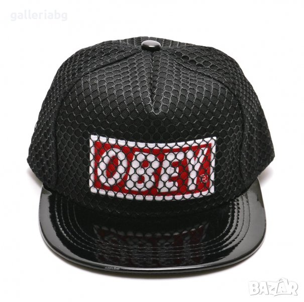Спортна лятна шапка с козирка, декорирана с мрежа и надпис Obey. Шапката е с възможност за регулиране на размера.