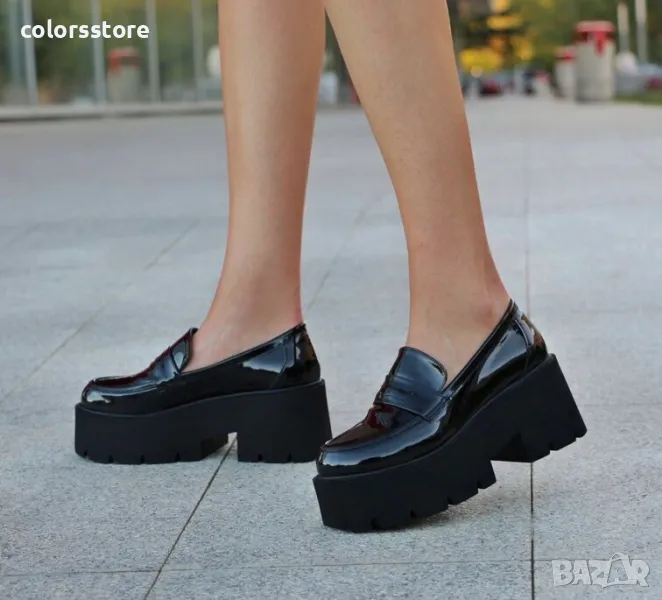 Обувки на платформа - черен лак - NPR30