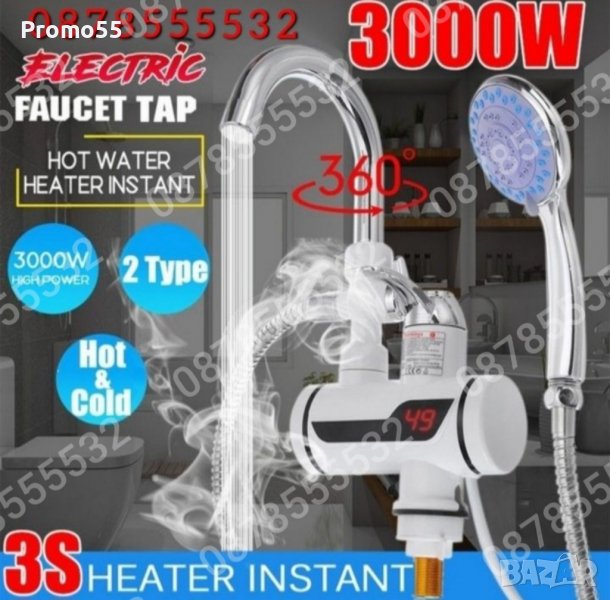 Смесител за вода нагревател за мигновено загряване 3000W с душ, за стена и плот