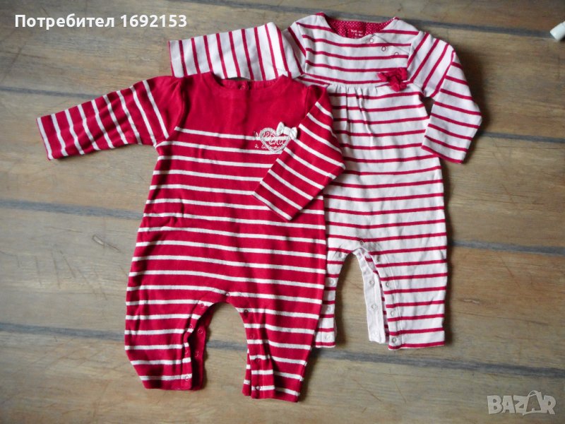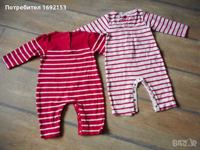 2 броя боди цял гащеризон "Weekend à la Mer" (френска фирма) – бяло и червено. 100% плътен, дебел памук. Много качествена изработка, здрави, но бялото има забележка - зацапване. Размер 12м. Купувани по 10 евро броя.