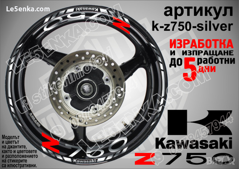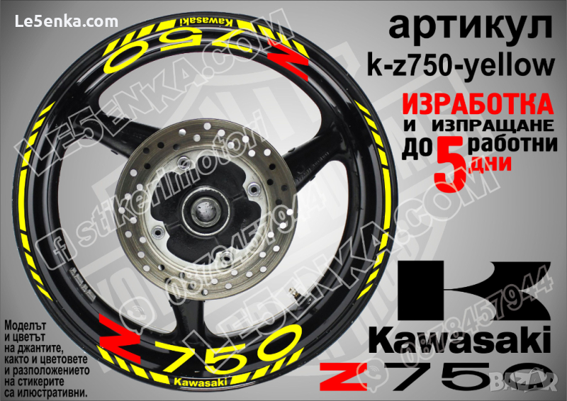 Kawasaki Z750 кантове и надписи за джанти k-Z750-green Кавазаки