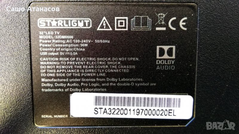 Модули от телевизор STARLIGHT 32DM6600 със счупена матрица (панел CX315DLEDM / LE-32P28 )