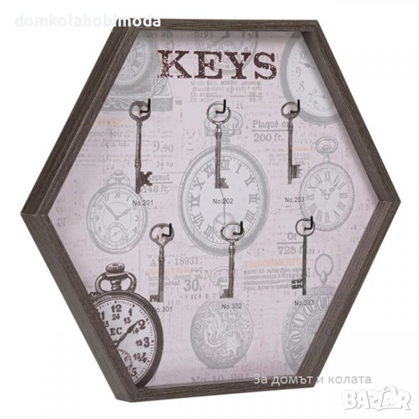 Дървена кутия за ключове, шестоъгълна 33x29 см. 6 кукички