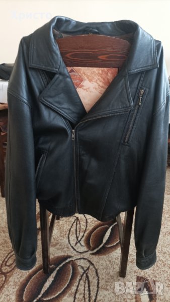 Мъжко кожено яке - естествена кожа тип мото рокерия, телешки бокс с добра кройка, три външни джоба и два вътрешни.