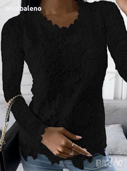 Дамска ежедневна дантелена семпла и елегантна блуза с дълги ръкави, 4цвята