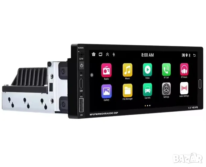 Модерен единичен DIN мултимедия с Android, стандартен универсален размер и голям дисплей.