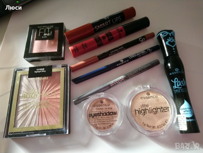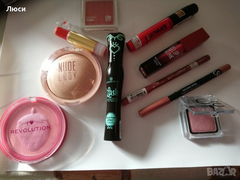 Само лично предаване...Палитра glitter eyeshadow с огледало и апликатор(не използван) донесена от Дубай : от 9 сенки за очи с блясък, които ще направят очите ви наситени и блестящи и ще завършат грима ви. Дълготрайни и ярки, блестящи цветове. (за да удовлетвори желанието ви , да блестите) Само пробвани 2 цвята (червен и лилав ) = цена 7 ев . На 4-8 лот само пробвани гримове - NUDE LOOK Печена пудра на голден роуз+ руж на REVOLUTION , Blusher Strawberry- Pink +сенки за очи на CATRICE - Nr.160 Silicon Violet + S-HE STYLEZONE POWDER ROUGE+ 2 течни червила не ползвани , ярки цветове:Течно матово червило My Matte Lip ink(N9)+тониращ балсам за устниUltimate Stay Waterfresh Lip Tint(цвят010) +черна спирала на есенс за обем 7неща + 3 подаръка = ЦЕНА 10 ев . НА 9-12 снимки лот само прбвани гримове :Хайлайт и руж пудра(не ползвано) MegaGlow Hello Halo (1111564E)+Maybelline New York Fit Me Blush пигментирана пудра (pink25)+Essence The Highlighter Озаряващ хайлайтър за лице, цвят 10+ СЕНКИ ESSENCE-EYESHADOW (09 MORNING GLORY)+ 2 броя не използвани червила : essence (te`no `erwilo)Stay 8h Matte Liquid Lipstick, No. 04 Mad About You+GOLDEN ROSE Матово червило молив N 18 +черна спирала ESSENCE LASH PRINCESS FALSE LASH-за обем + Дълготраен молив за очи на есенс , нюанс 26 Deep-Sea Baby - a navy blue+ 3 подаръка = ЦЕНА 10 ев (за 8 неща+3 подаръка) . На последни 2 снимки две палитри , сенки = цена 7 ев