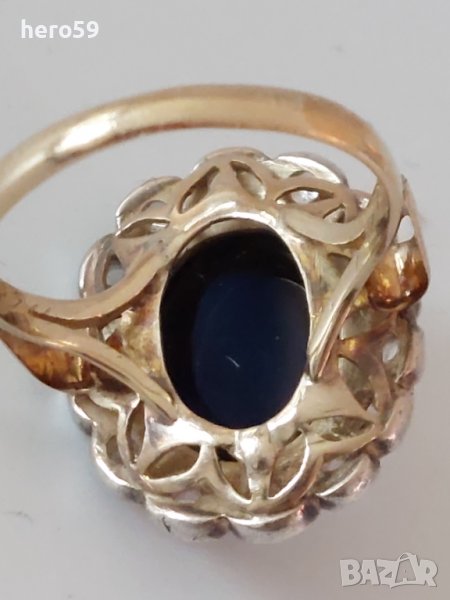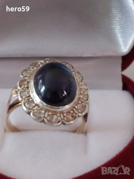 Стар антикварен златен дамски пръстен с диаманти и сапфир/злато 18 к. → Обява 39812205