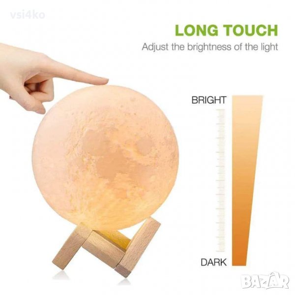Екологичен продукт – имитацията на луната е направена от екологичен материал без мирис, който е полиактид. Той е напълно биоразградим. Получава се от възобновяеми суровини като царевично брашно. Той не влияе неблагоприятно на здравето и неговата топла или студена светлина може да се регулира според вашите предпочитания . Поради тази причина е чудесен и за стаята на най-малките обитатели.