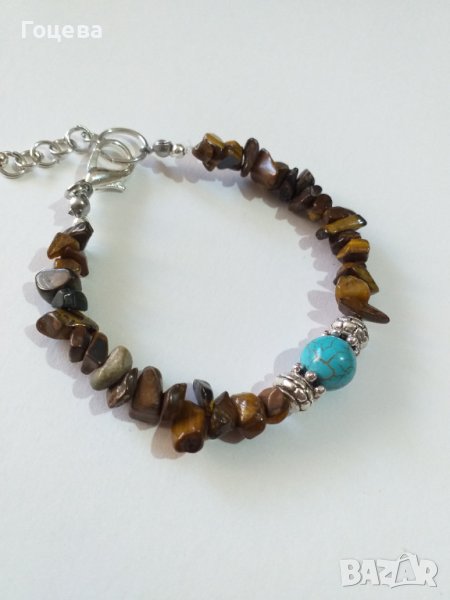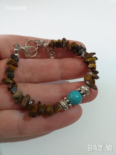 Много красива гривна с камъни Тигрово око и Тибетски Тюркоаз и красиви орнаменти в цвят Сребро → Обява 39814131