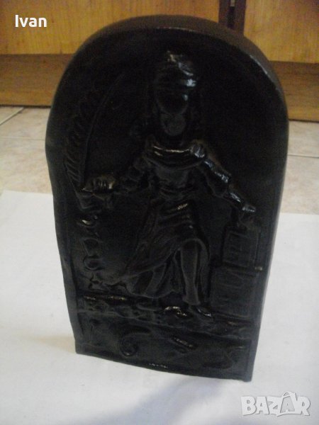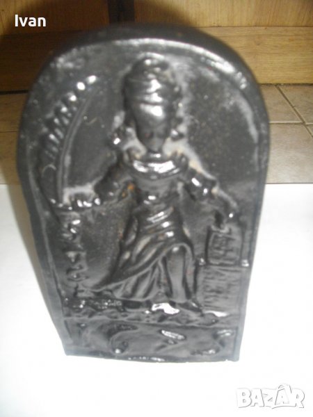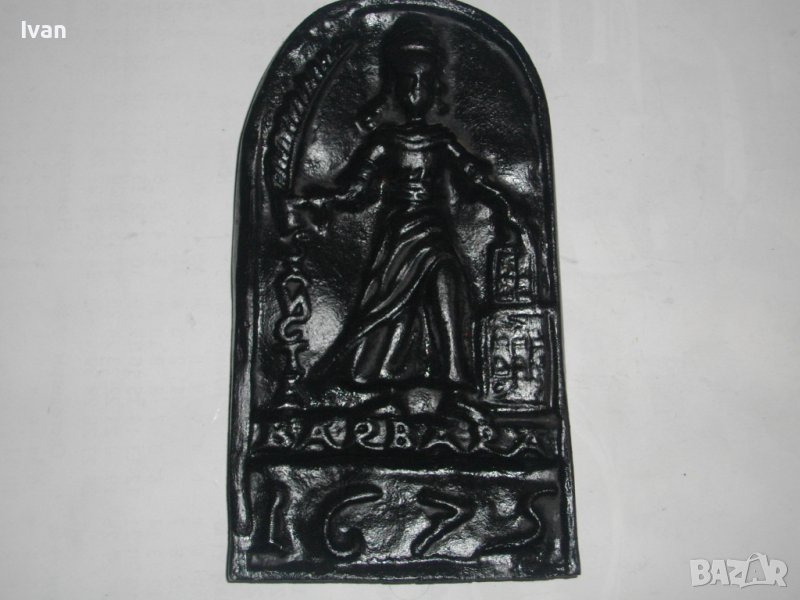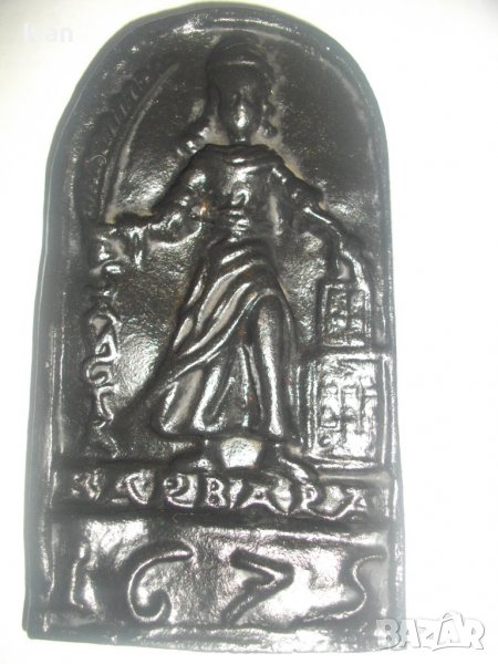 чугунена голяма емблема, изобразаваща Света Барбара/Варвара - защитник/покровител и закрилник на артилеристите.
