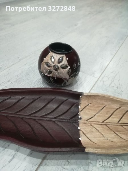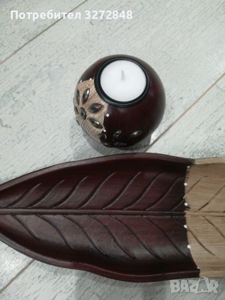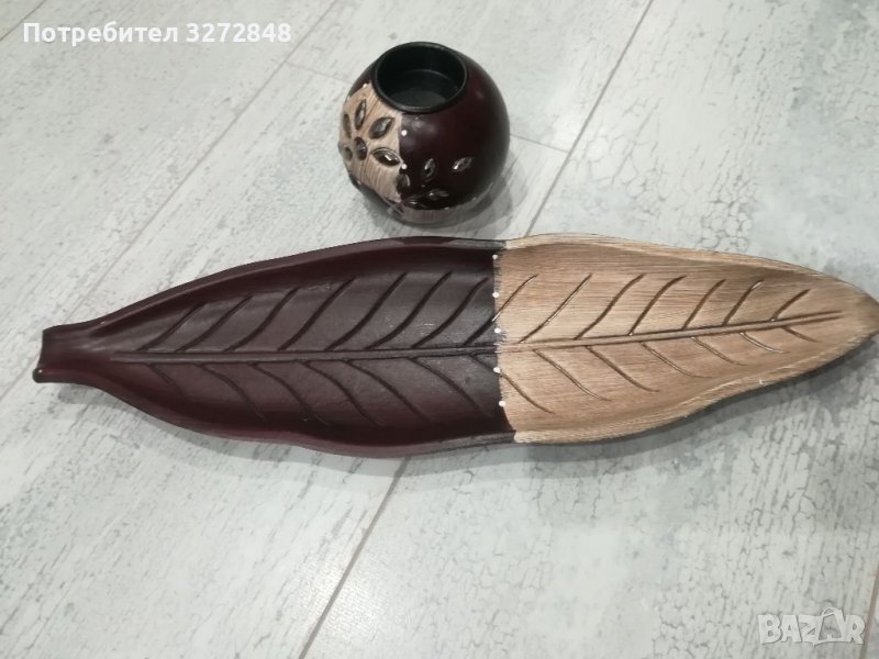 Дървени свещник и поставка/листо → Обява 39820647