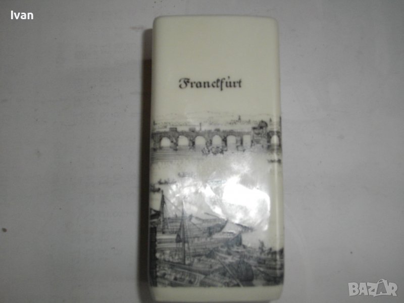 Изображението представлява пейзажи на град Франкфурт, преливащи непрекъснати в различните 4 страни на вазата.