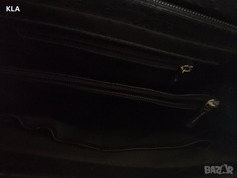 Чантата няма, протрито, скъсано, като нова е. Височина 35 см, широчина 11 см, дължина 33 см. Много е удобна и за документи.