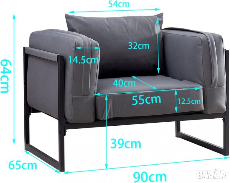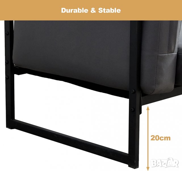Рамката на канапето е изработена от здрав прахово боядисан метал, а основата е от дървени летви, които разпределят тежестта и гарантират стабилност и удобство.