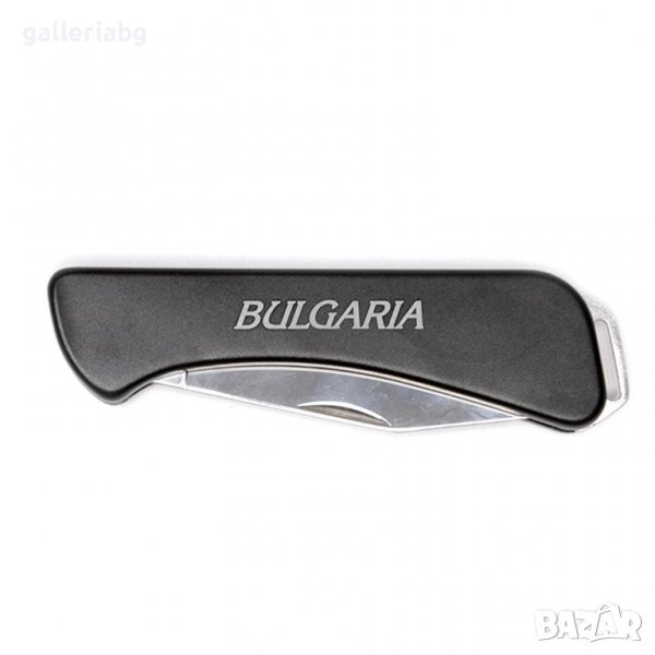 Сувенирен черен джобен нож с отварачка. Ножът е гравиран с надпис Bulgaria.
