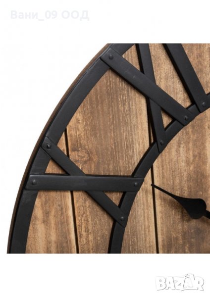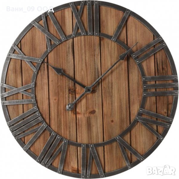 Часовникът има здрава рамка от пластмаса, изключително наподобяваща метал, и е изключително издръжлив. Снабден с висококачествен кварцов механизъм, часовникът прецизно и точно отмерва времето. Дървеният циферблат заедно с римските цифри допълват винтидж стила на часовника. Може лесно да се закачи на стената. Часовникът ще придаде изчистен и подреден стил на вашия интериор.