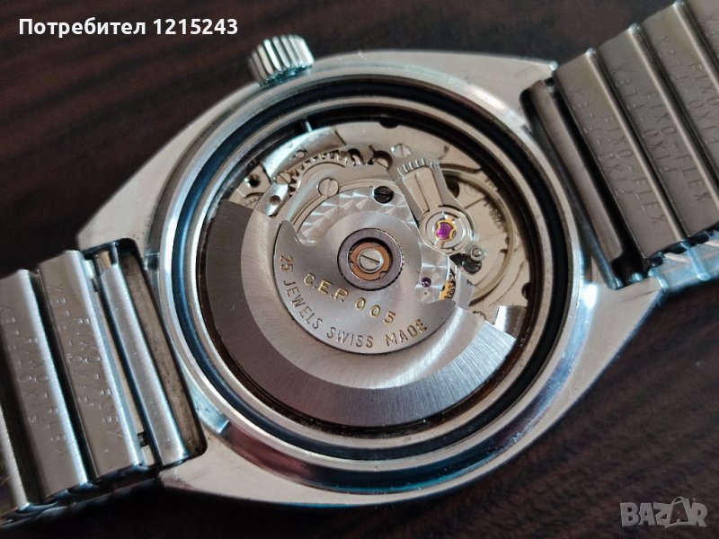 Представям ви една интересна Сертина с размери 36мм без короната и междулъгово разстояние 18мм. Часовника работи, бързата смяна на ден и дата също, езика е английски и испански.