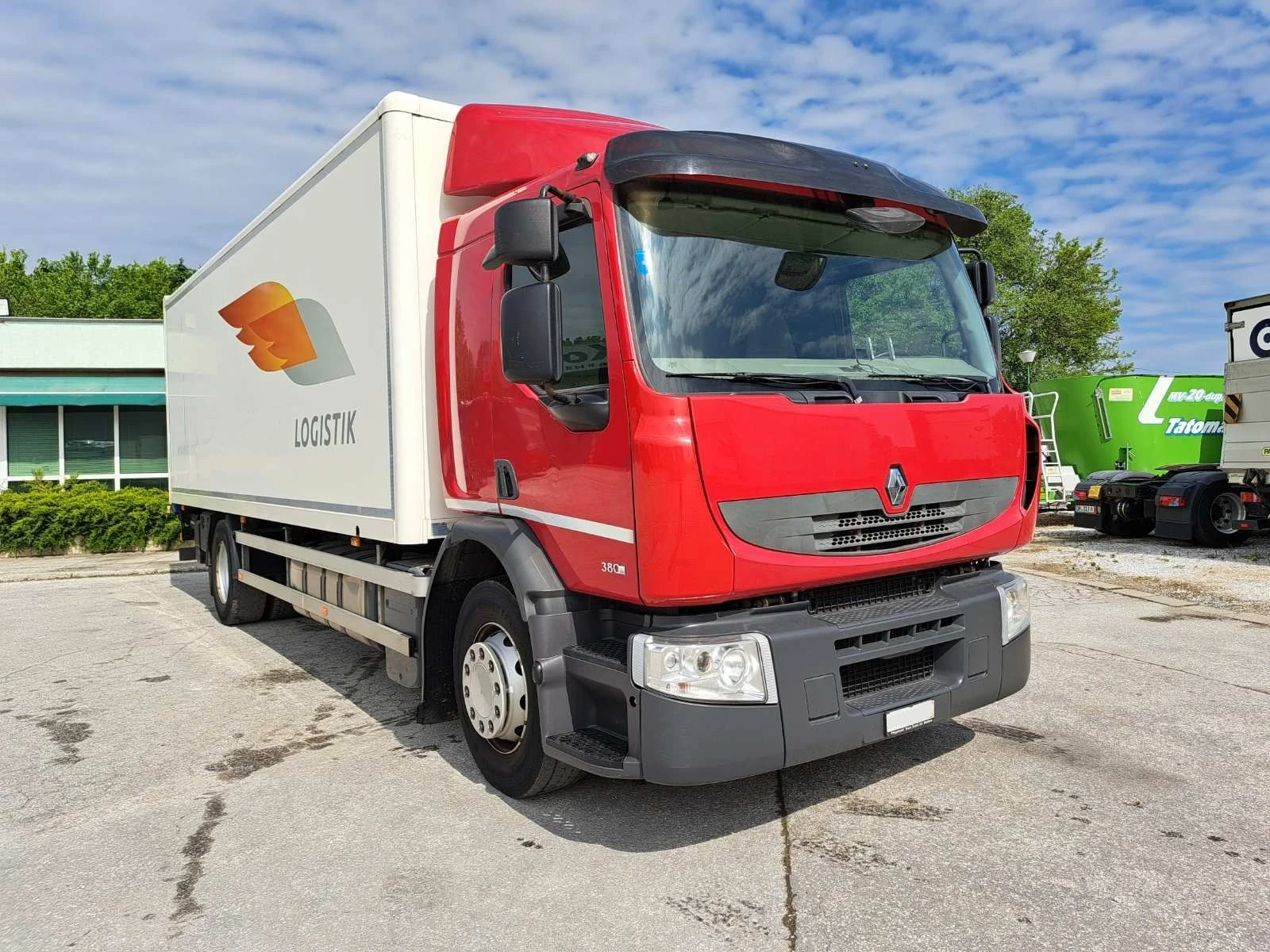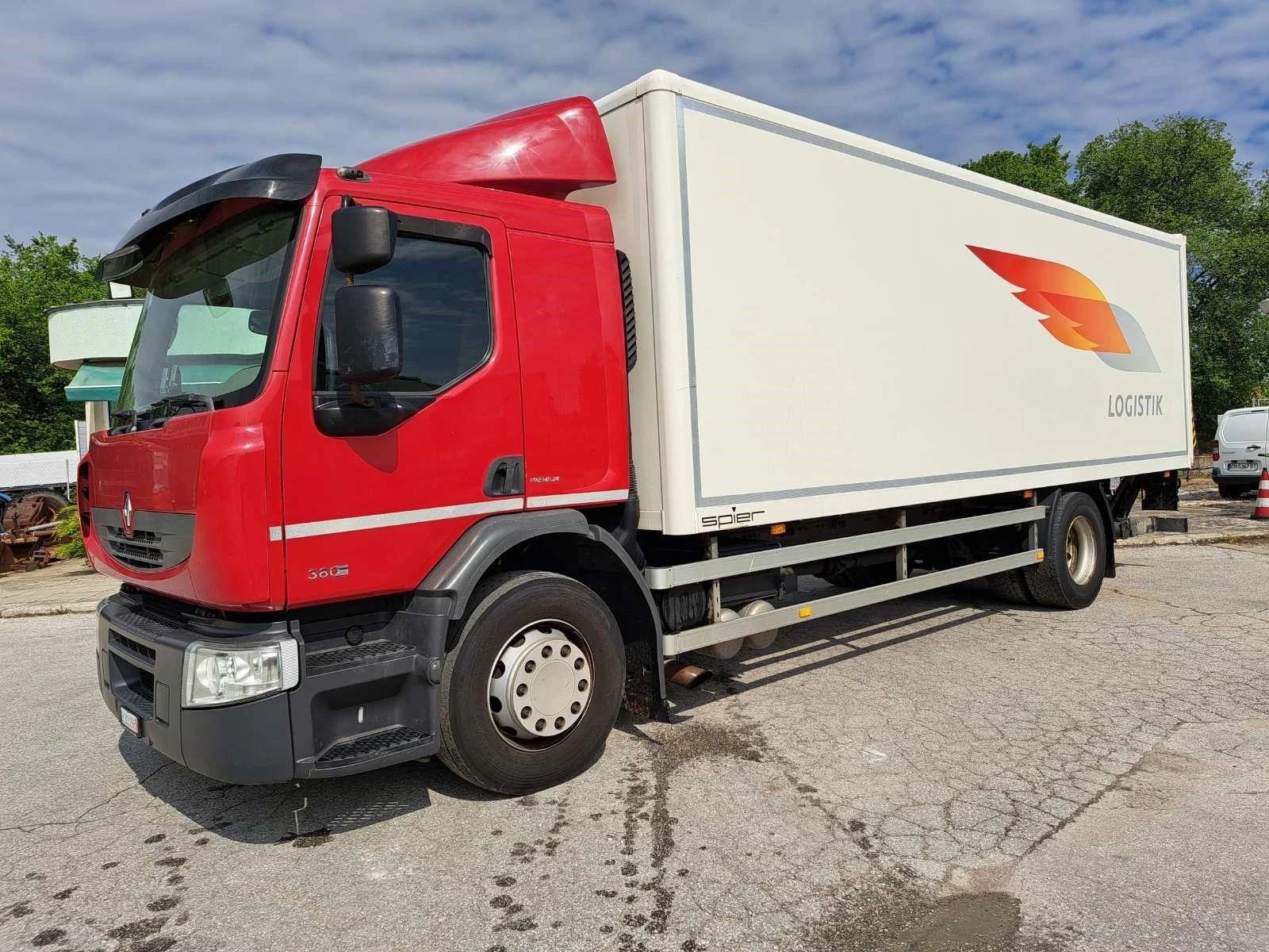 " RENAULT PREMIUM 380 " , EURO 5 - двигател, RETARDER , падащ борд, р-ри на фургона - 7, 30/2, 47/2, 20 м, общо тегло - 18 000 кг, тара - 9 500 кг,