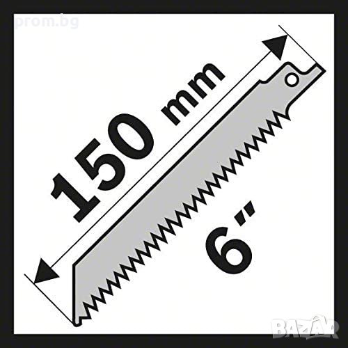 - 5 бр. ножчета за саблен трион BOSCH S 918 AF, с дължина 150 mm и стъпка на зъбите 1 / 24 mm/TPI. Подходящи са за рязане на тънка ламарина (1-3mm), фини затворени тръби и профили (ø 100 mm). Зъбите са вълнообразни и фрезовани.