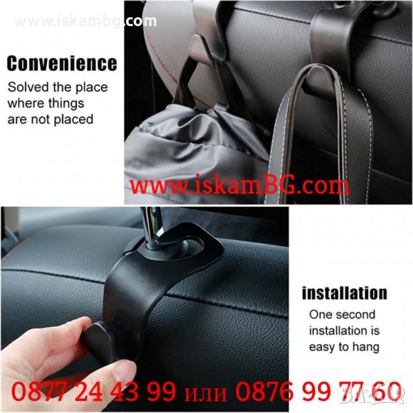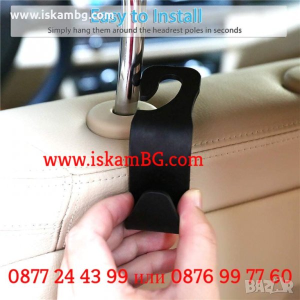 1 броя закачалка за автомобилна седалка. Чудесен органайзер за чанти, торби и всякакви други аксесоари, които могат да се закачат. Закачалката се закача за задната седалка. Можете да закачите много неща и те ще са винаги под ръка.