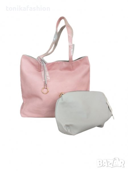 Двулицева чанта 2в1 /от мека дебела еко кожа /тип торба.Закопчаване със скритото магнитно копче.Към нея има несесер с цип и презрамка, който също може да се носи като чанта. Цветните комбинации ще направят завършена вашата визия.