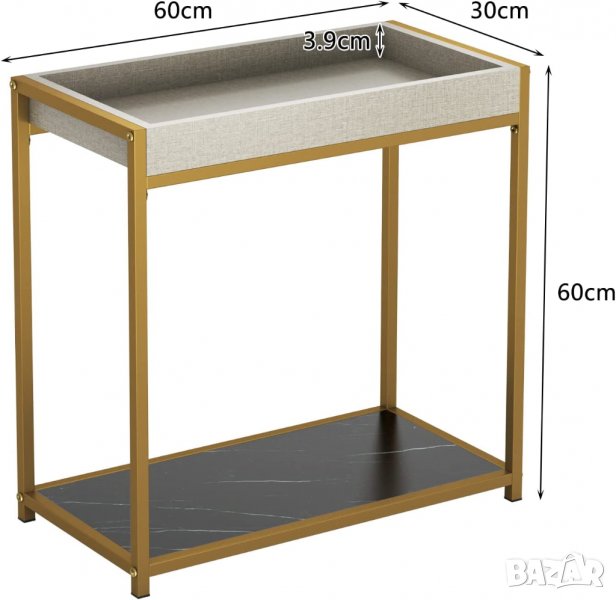 метална рамка с прахово покритие и дебели МДФ плоскости, които осигуряват стабилност и